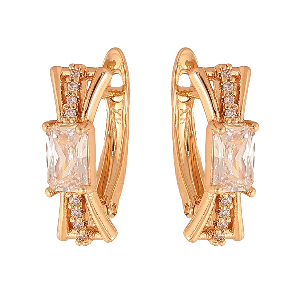 Сережки Xuping колір Позолота 18К англійський замок "Візерунок з кристалами"