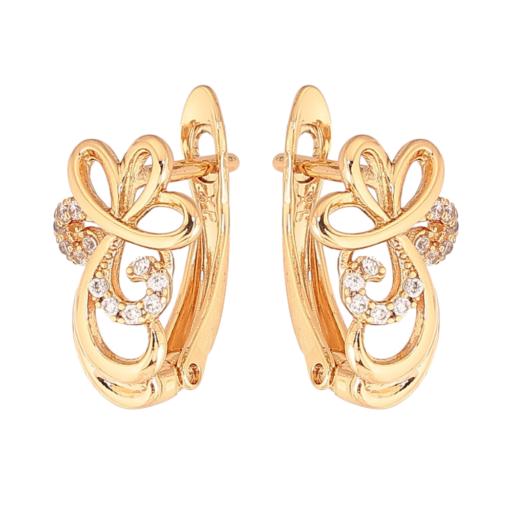 Сережки Xuping колір Позолота 18К англійський замок "Візерунок з кристалами"