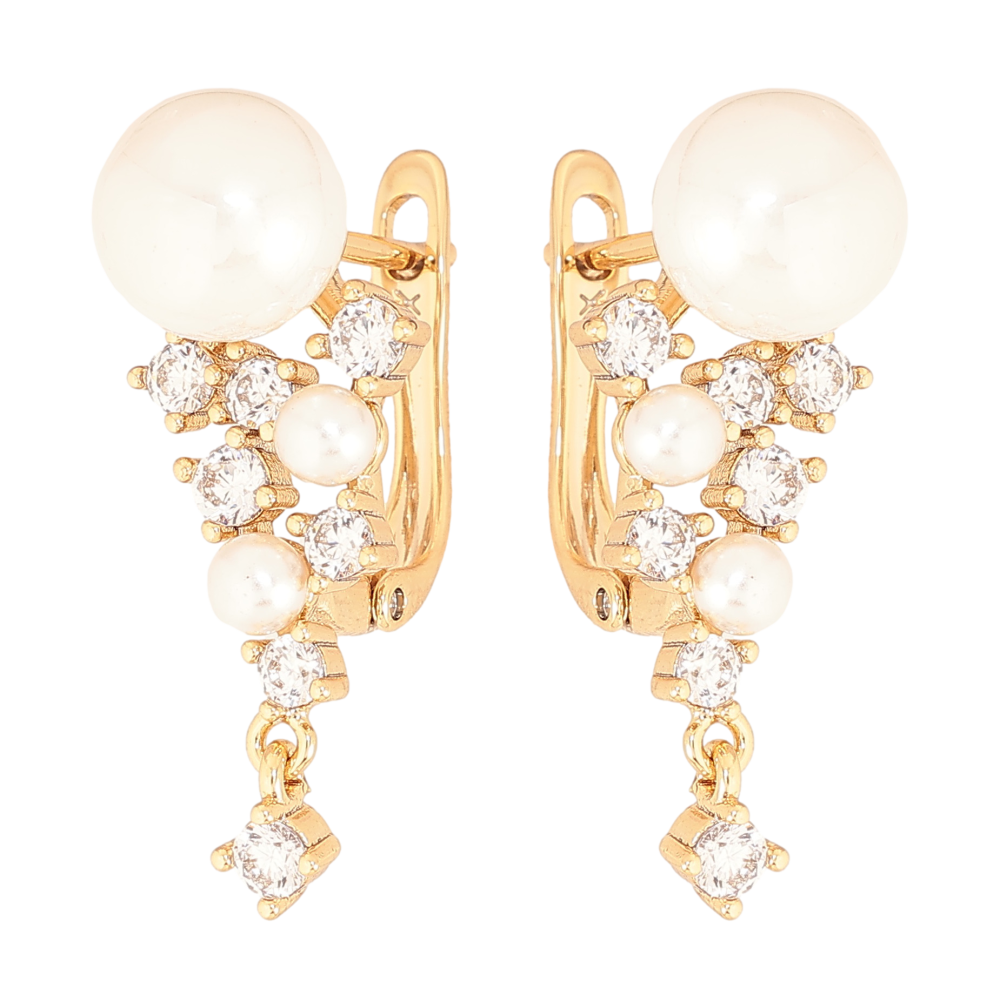 Сережки Xuping колір Позолота 18K англійський замок "Візерунок з кристалами і перлинами"