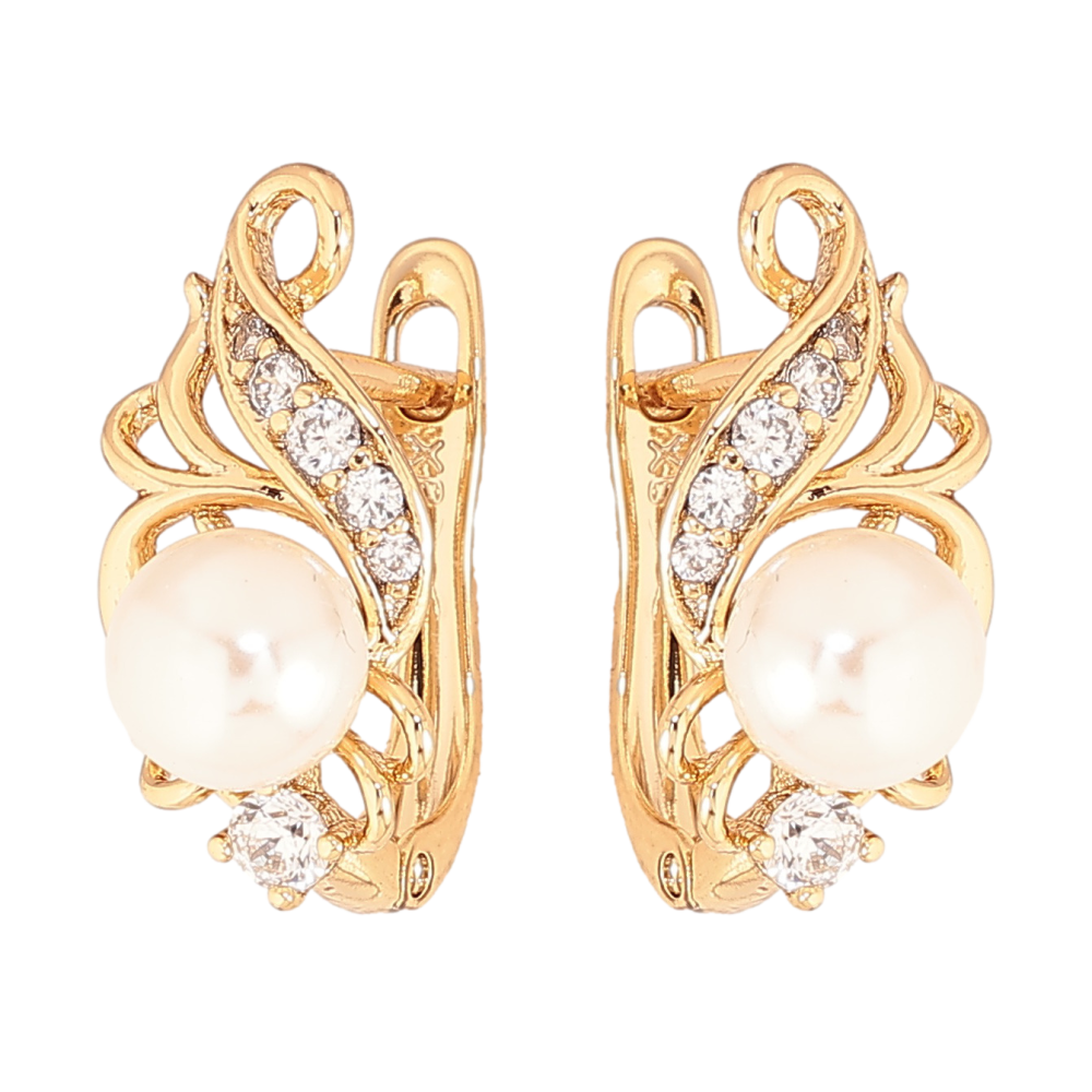 Сережки Xuping колір Позолота 18K англійський замок "Візерунок з кристалами та прелинами"