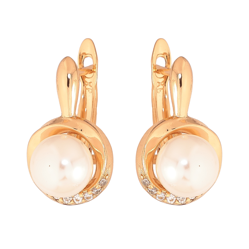 Сережки Xuping колір Позолота 18K англійський замок "Візерунок з перлинами"