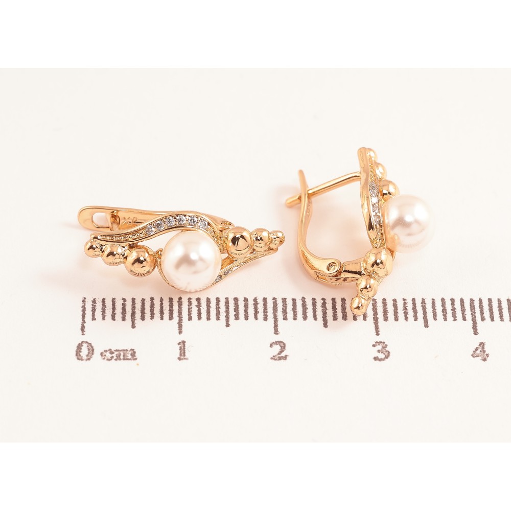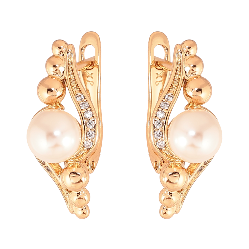 Сережки Xuping колір Позолота 18K англійський замок "Візерунок з перлинами"