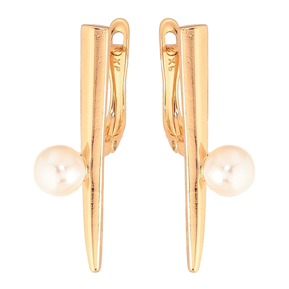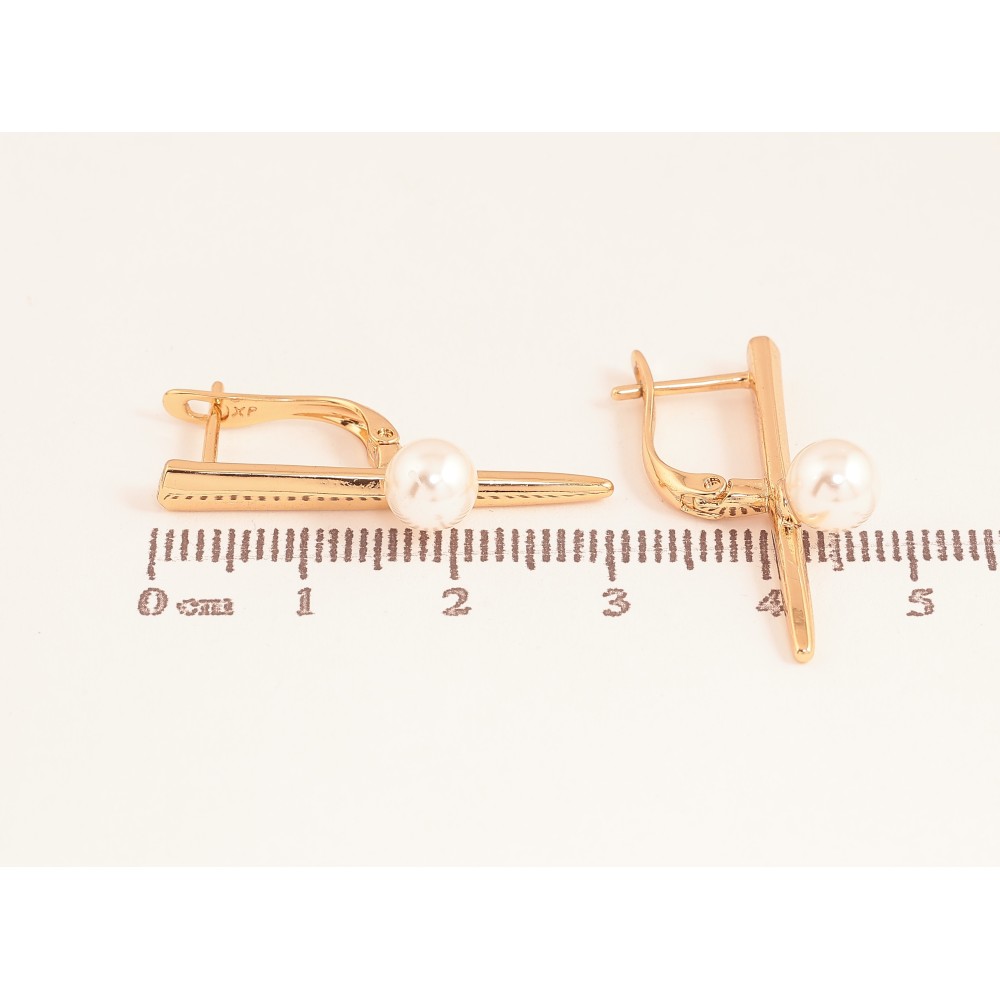 Сережки Xuping колір Позолота 18К англійський замок "Візерунок з перлиною"