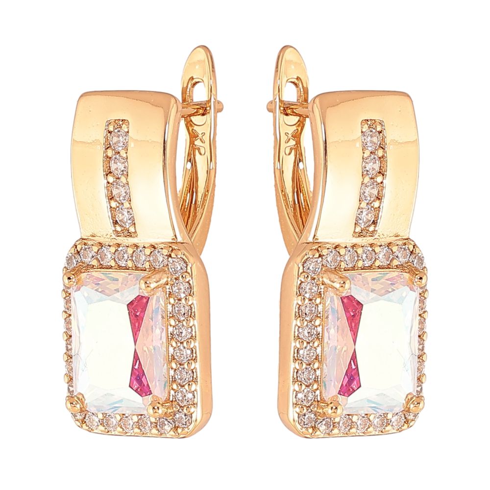 Сережки Xuping колір Позолота 18K англійський замок "Візерунок з райдужними кристалами"