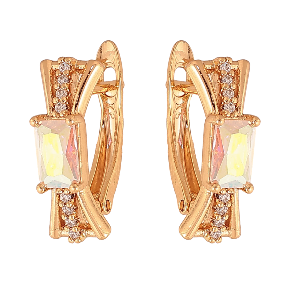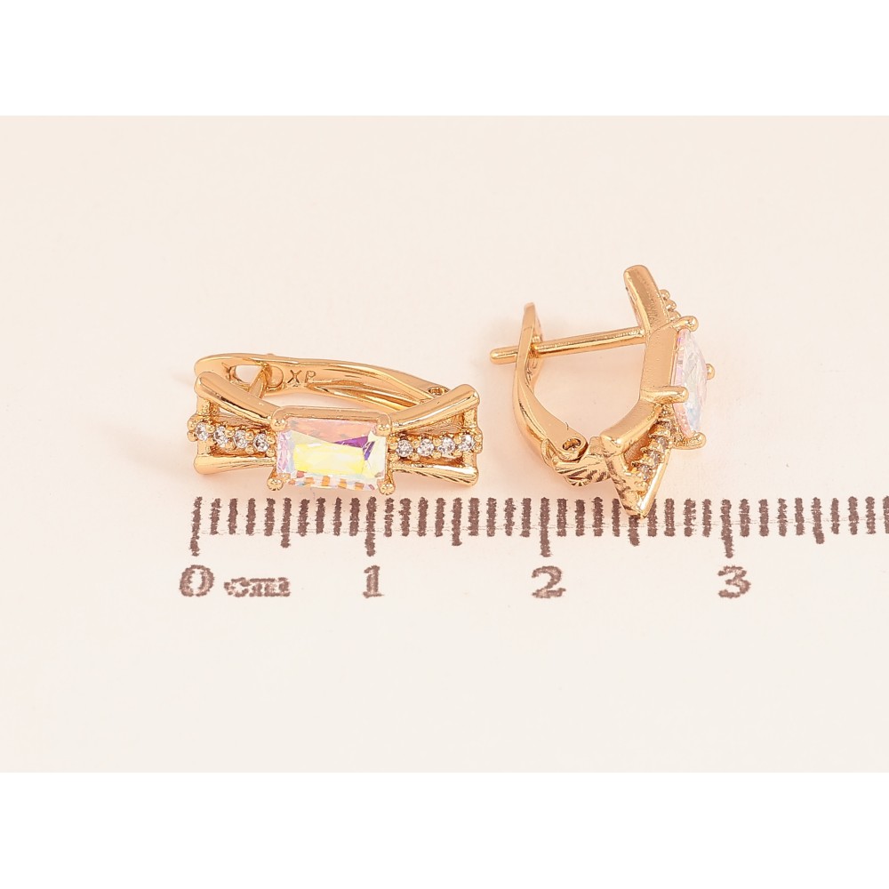 Сережки Xuping колір Позолота 18К англійський замок "Візерунок з райдужними кристалами"