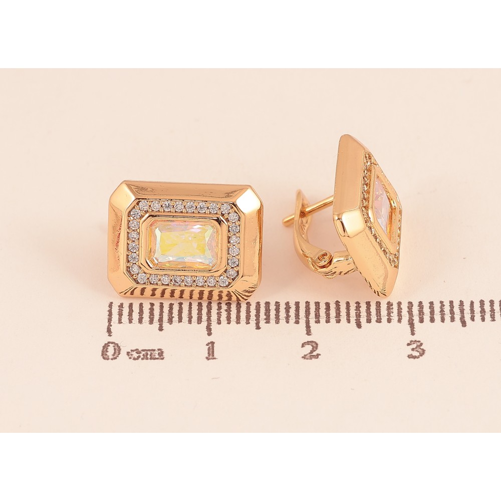 Сережки Xuping колір Позолота 18К англійський замок "Візерунок з райдужними кристалами"