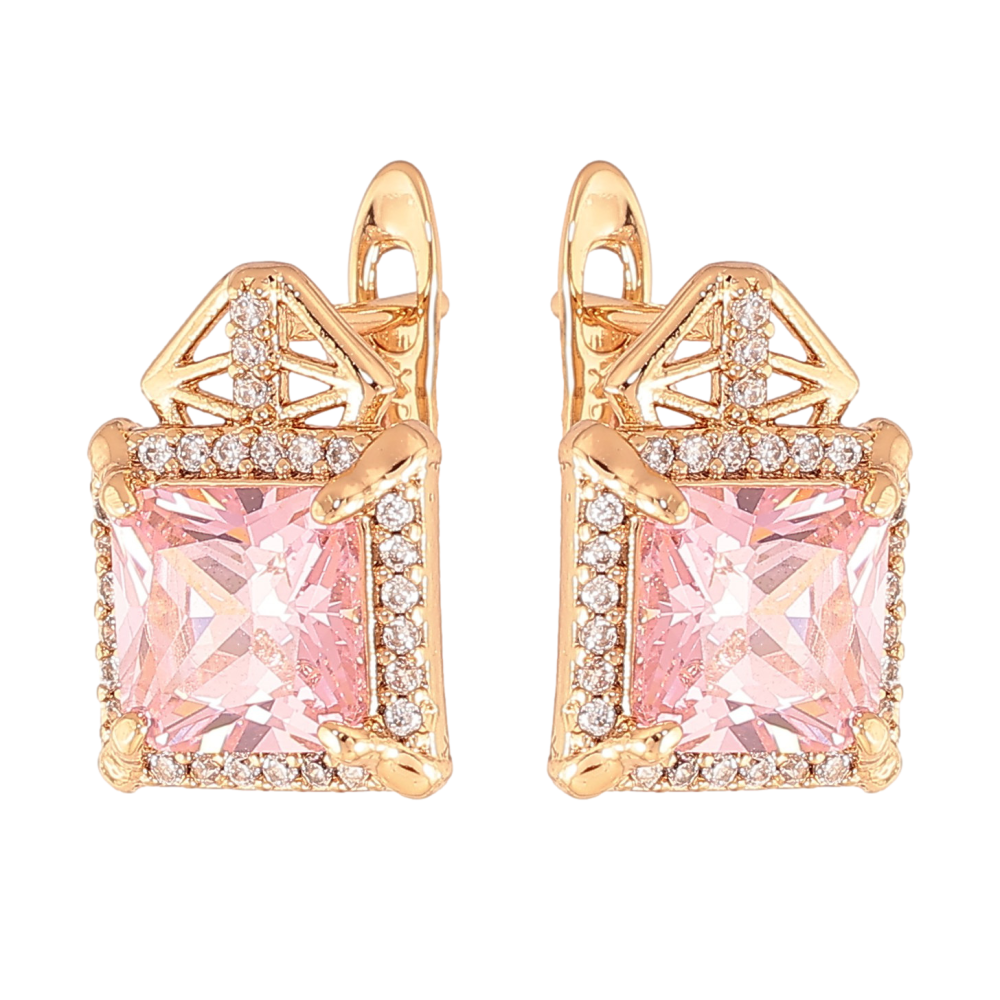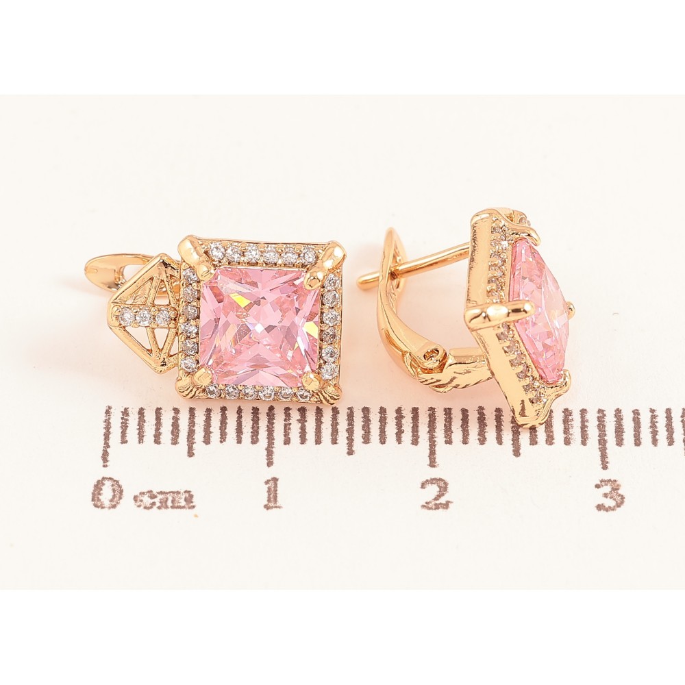 Сережки Xuping колір Позолота 18K англійський замок "Візерунок з рожевими кристалами" фото №1