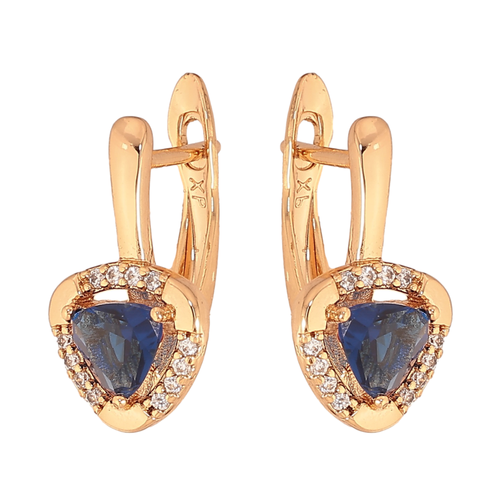 Сережки Xuping колір Позолота 18К англійський замок "Візерунок з синіми кристалами"