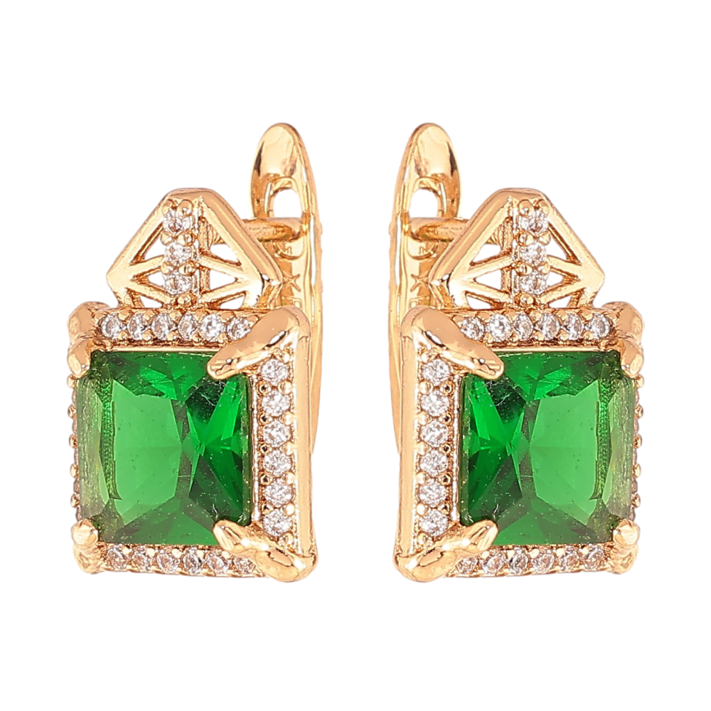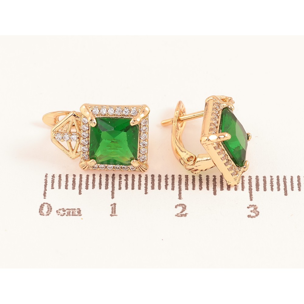 Сережки Xuping колір Позолота 18K англійський замок "Візерунок з зеленими кристалами"