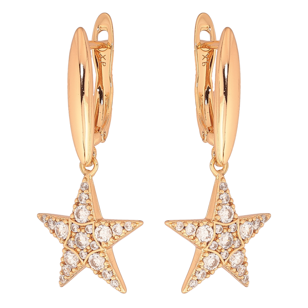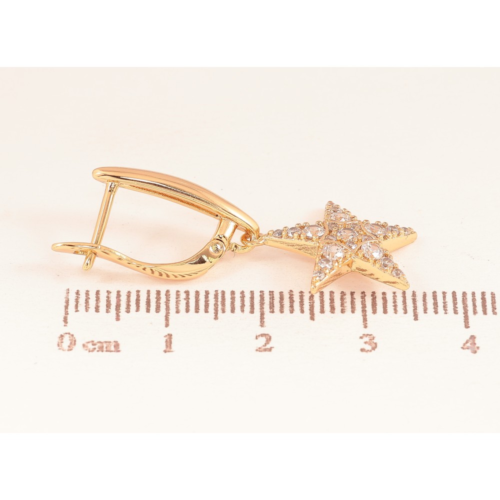 Сережки Xuping колір Позолота 18К англійський замок "Зірки з кристалами"