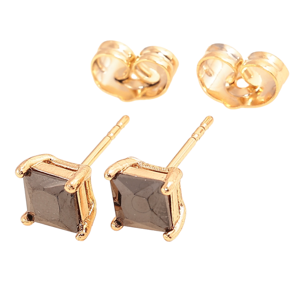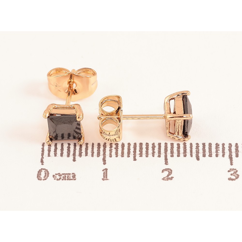 Сережки Xuping колір Позолота 18К пусети "Чорні кристали в 4-х крапановій оправі" 5х5мм