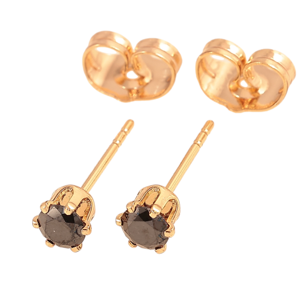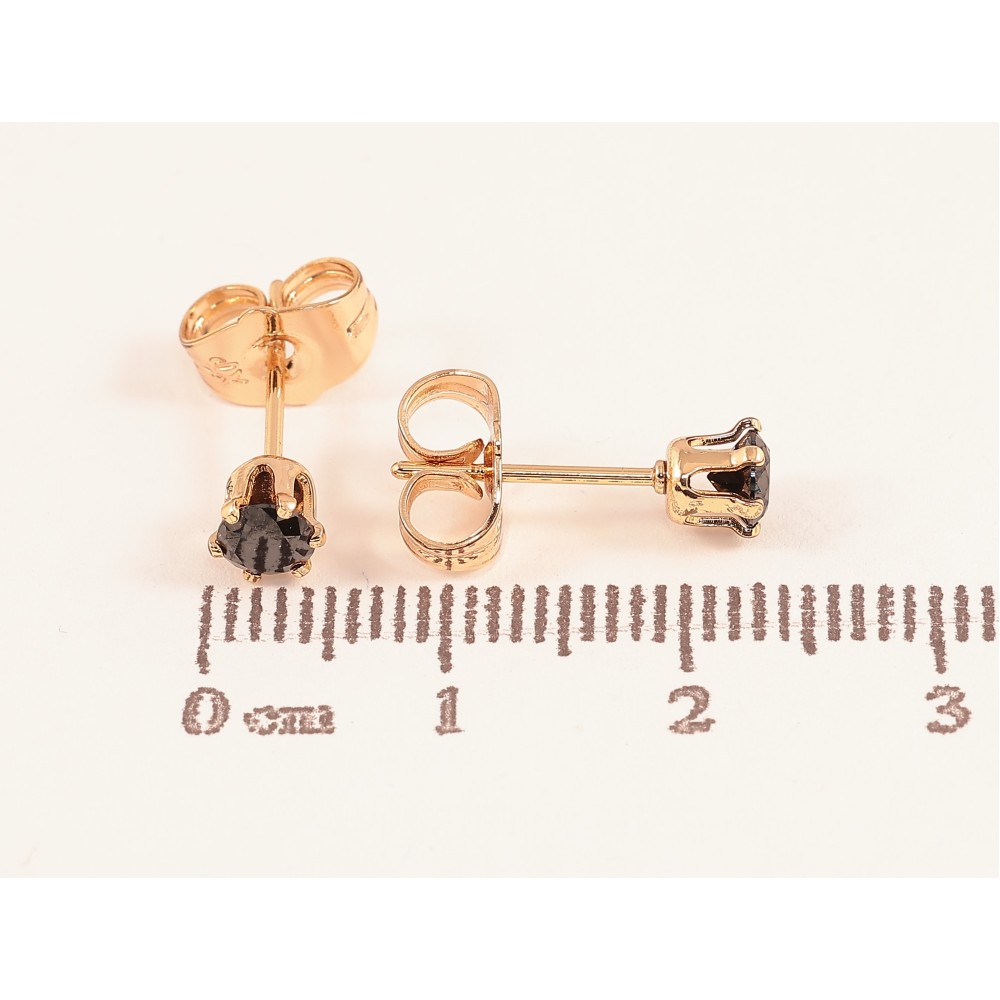 Сережки Xuping колір Позолота 18К пусети "Чорні кристали в 6-ти крапановій оправі" ø 4мм