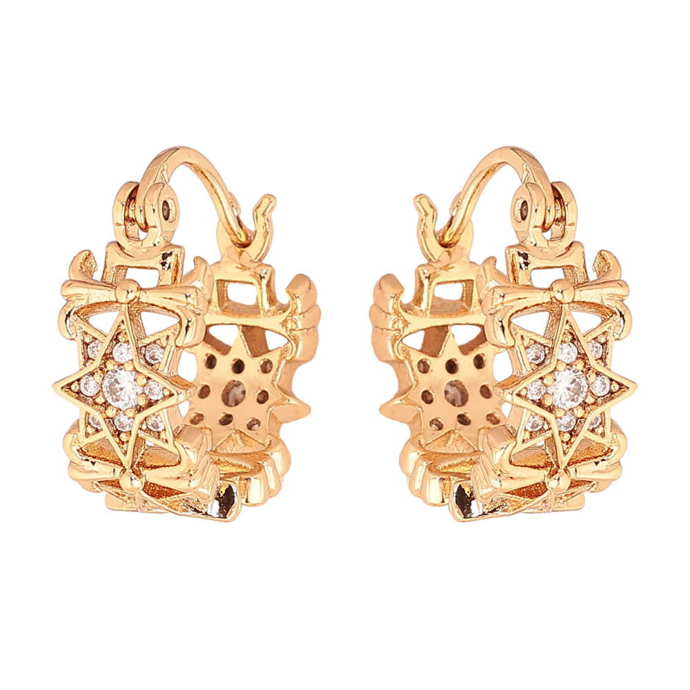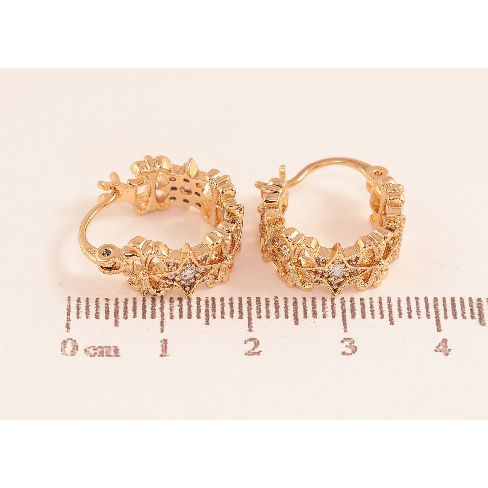 Сережки Xuping колір позолота 18K італійський замок декоративний візерунок з кристалами ø 1.5см