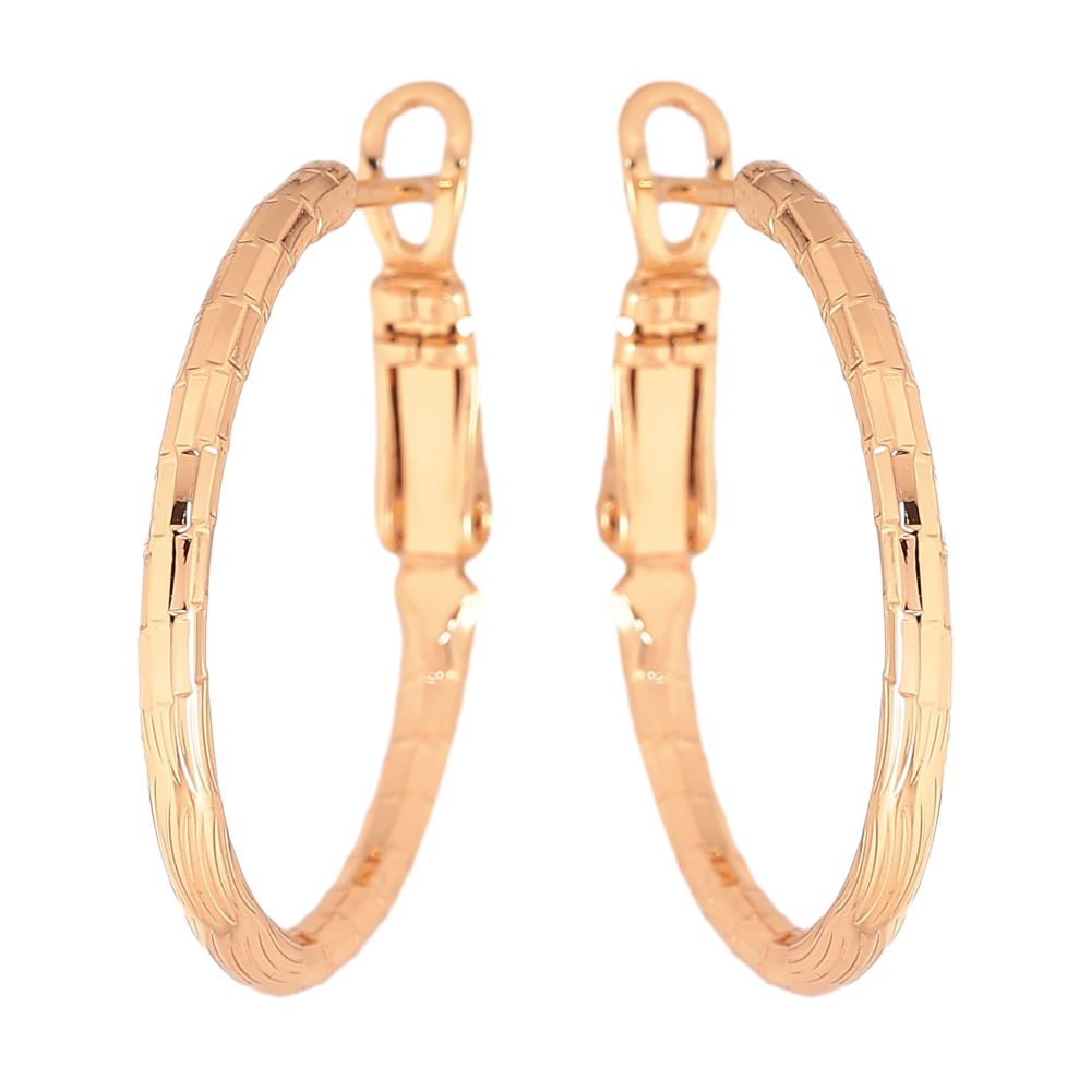 Сережки Xuping колір Позолота 18K кільця (конго) "Декоративний візерунок" ø 2.5см фото №1