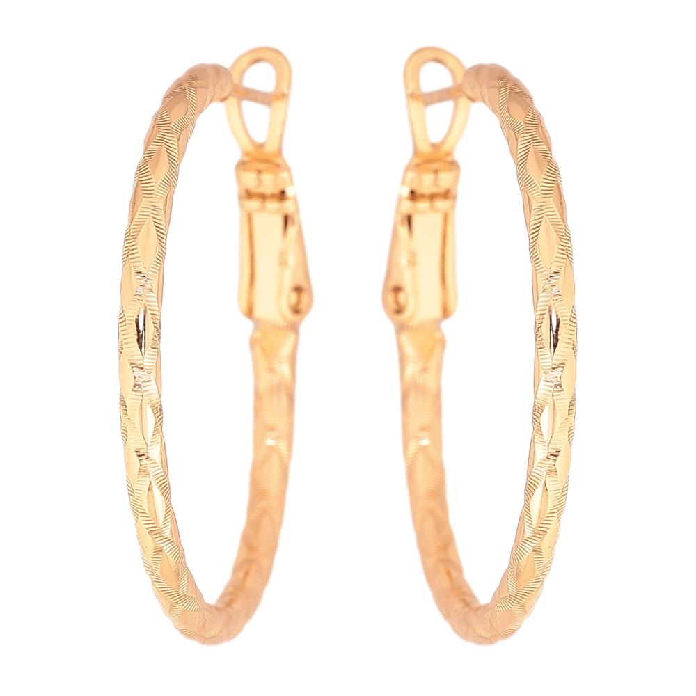 Сережки Xuping колір Позолота 18K кільця (конго) "Декоративний візерунок" ø 3см фото №1