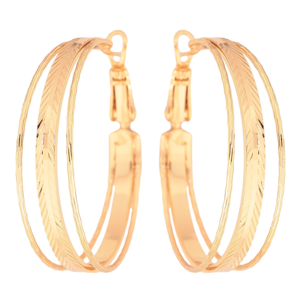 Сережки Xuping колір Позолота 18K кільця (конго) "Потрійні з візерунком" ø 3.5см