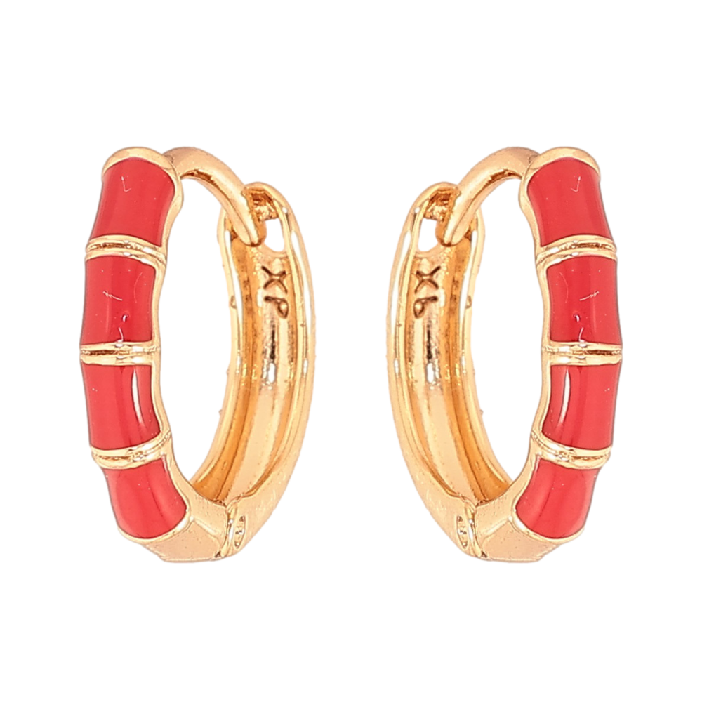 Сережки Xuping колір Позолота 18К кільця "Візерунок з червоною емаллю"