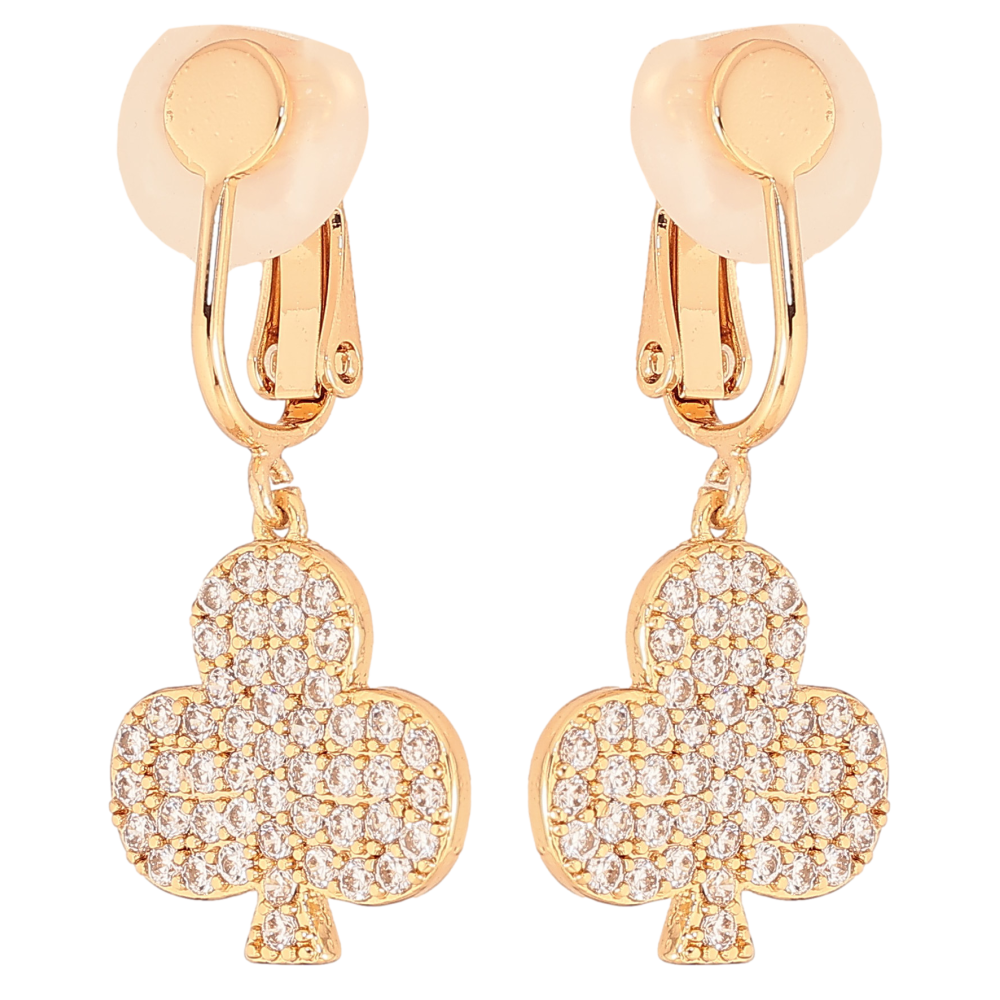 Сережки Xuping колір Позолота 18К кліпси "Трефи з інкрустацією кристалами"