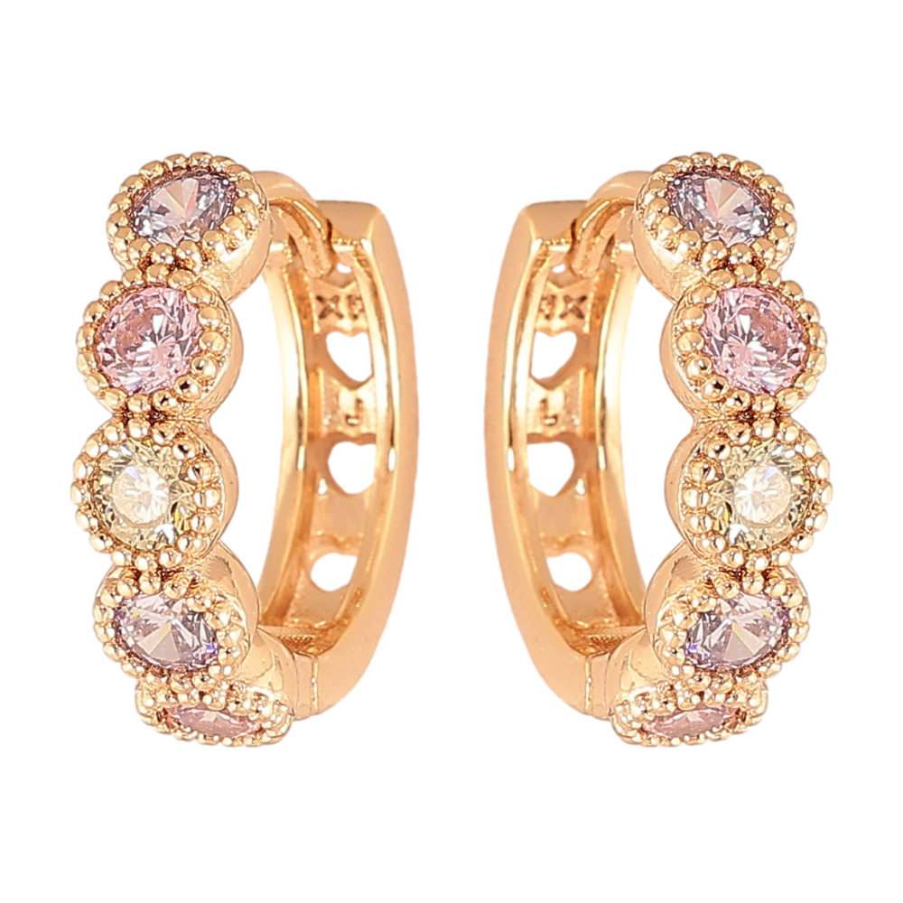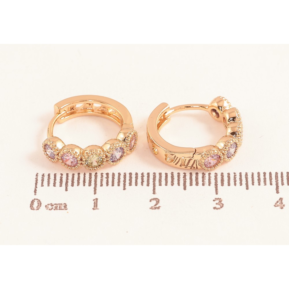 Сережки Xuping колір Позолота 18K колечка "Дорожки різнокольорових кристалів"