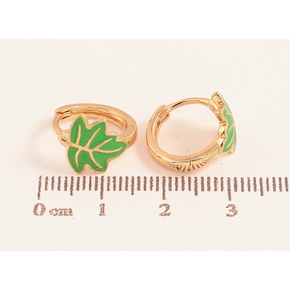 Сережки Xuping колір Позолота 18K колечка "Листочки з зеленою емаллю"