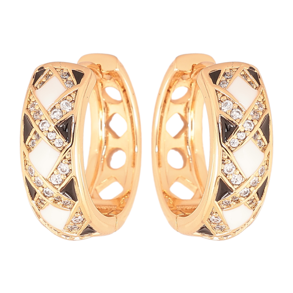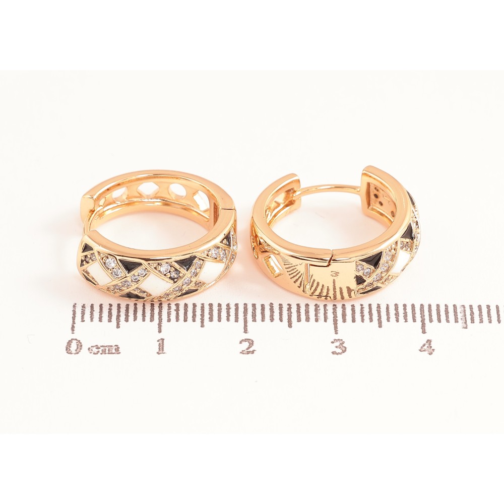 Сережки Xuping колір позолота 18К колечка візерунок чорно-білої емаллю та кристалами
