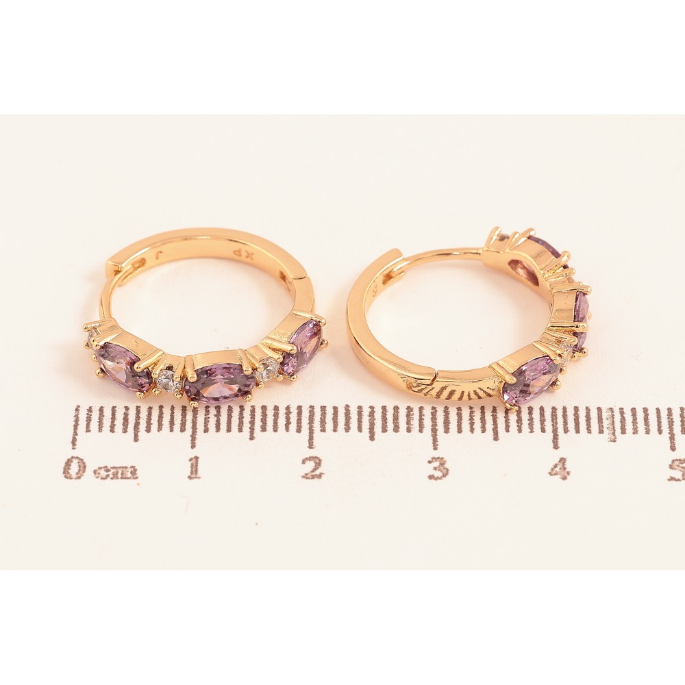 Сережки Xuping колір Позолота 18K колечка "Візерунок з бузковими кристалами"