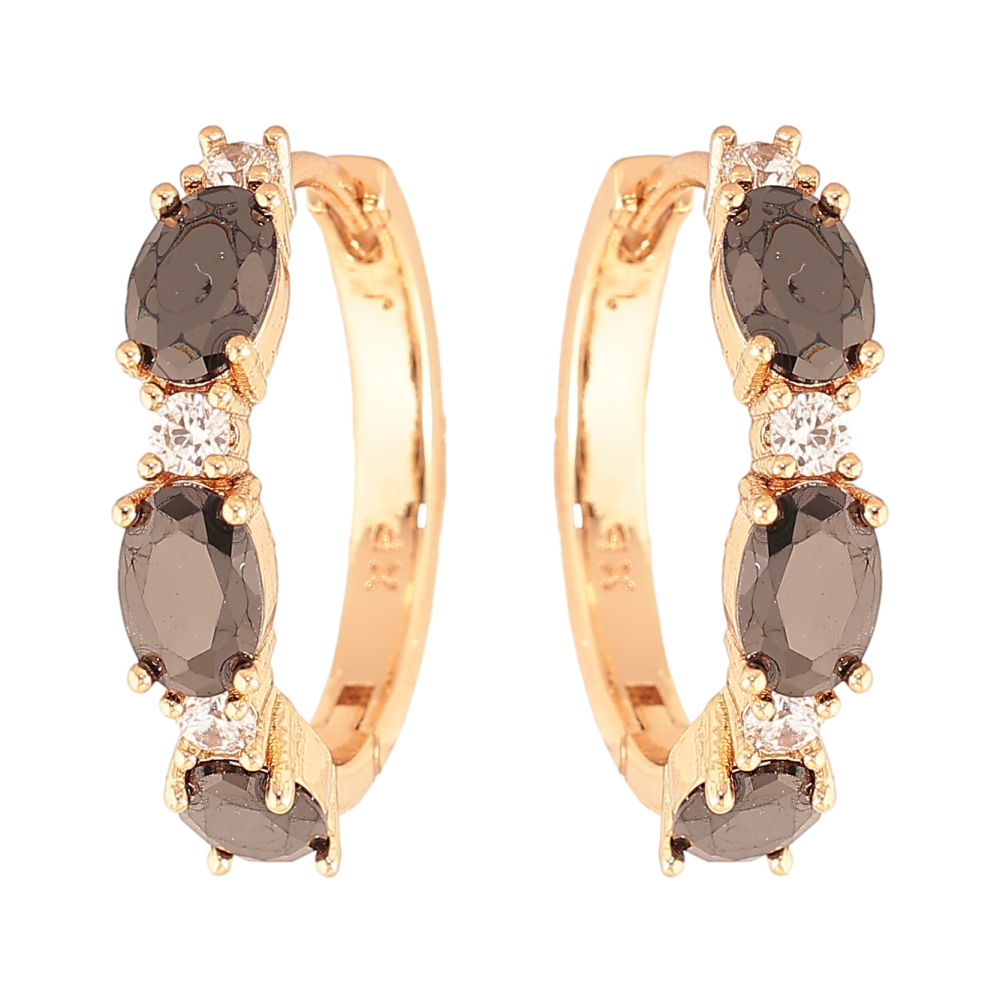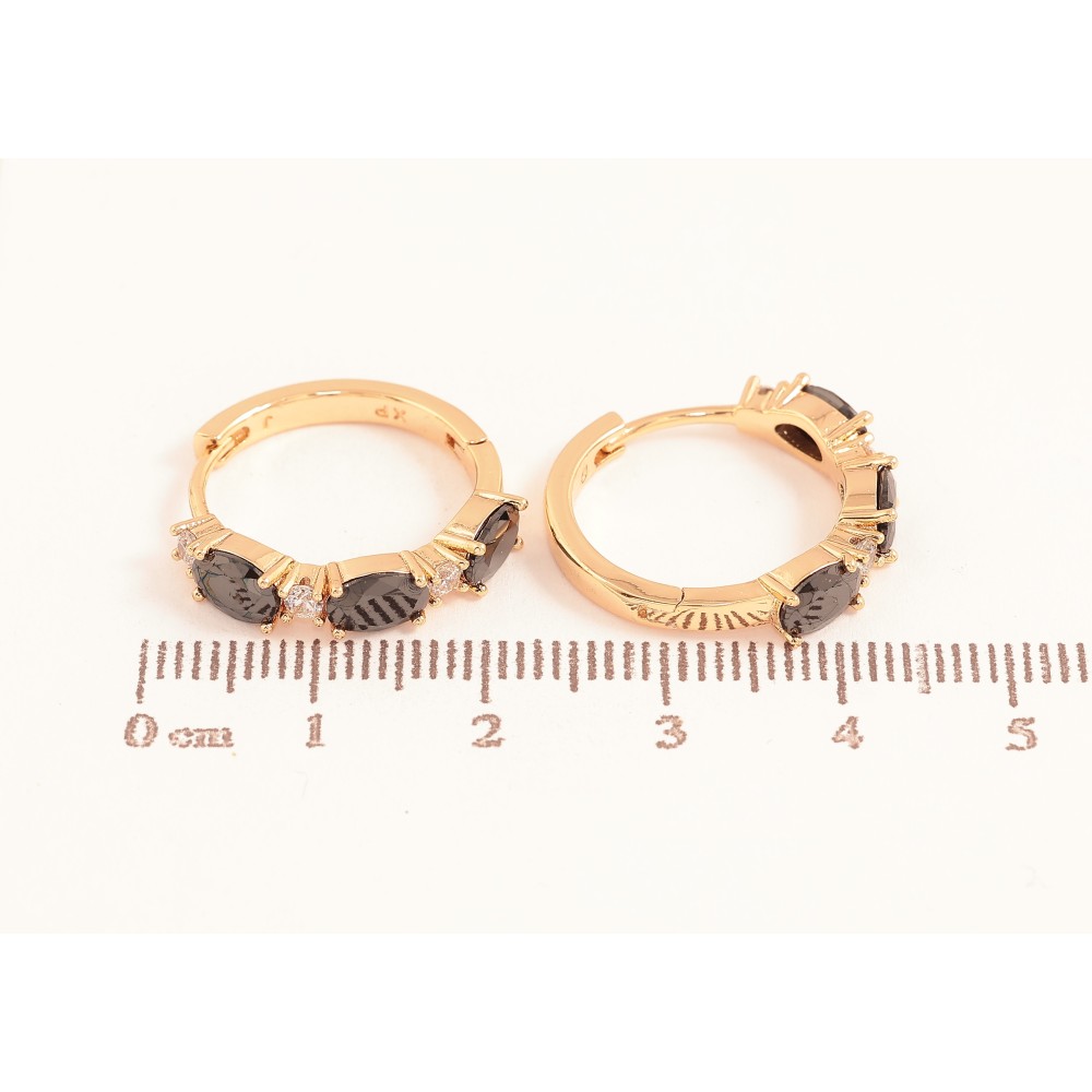 Сережки Xuping колір Позолота 18K колечка "Візерунок з чорними кристалами"