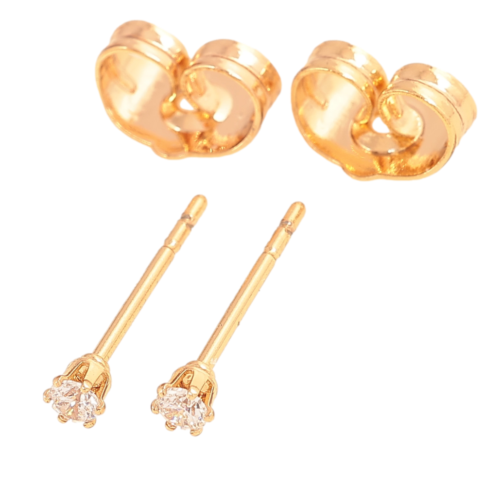 Сережки Xuping колір Позолота 18К пусети "Кристали в 6-ти крапановій оправі" ø 2мм