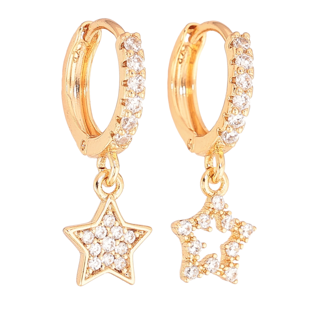 Сережки Xuping колір Позолота 18К підвіски на колечках "Асиметричні зірки з інкрустацією кристалами"