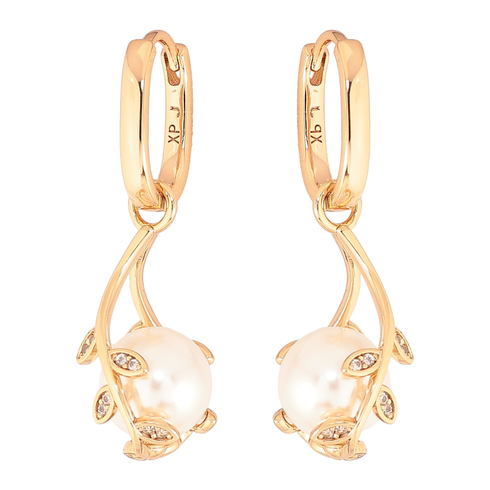 Сережки Xuping колір Позолота 18К підвіски на колечках "Гілочки з перлинами"