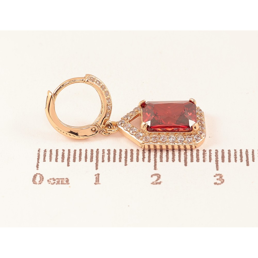 Сережки Xuping колір Позолота 18К підвіски на колечках "Інкрустація з червоними кристалами"