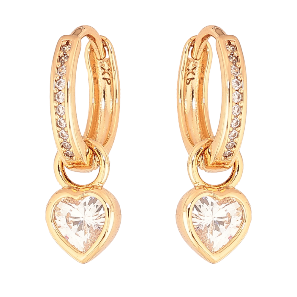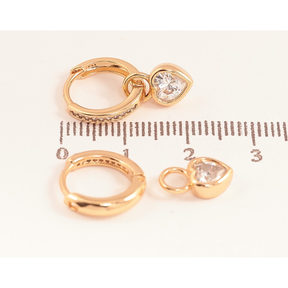 Сережки Xuping колір Позолота 18К підвіски на колечках "Кристальні серця" 2 в 1