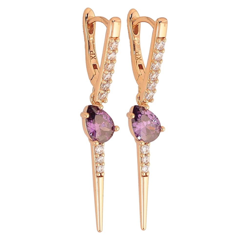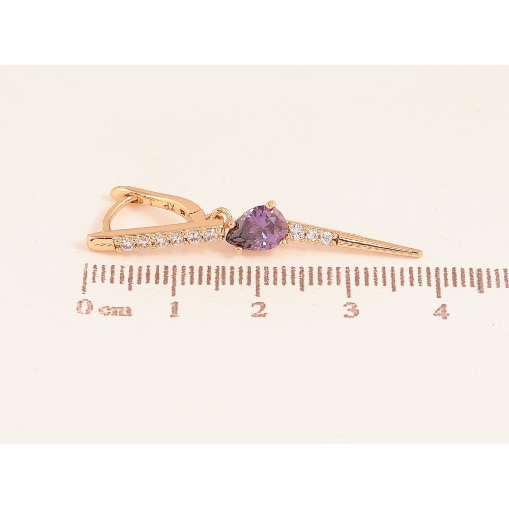 Сережки Xuping колір Позолота 18К підвіски на колечках "Підвіски з бузковими кристалами"