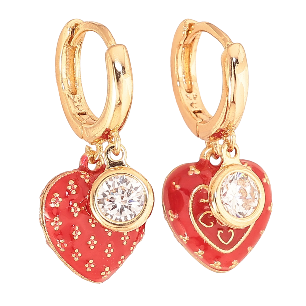 Сережки Xuping колір Позолота 18К підвіски на колечках "Сердечки з асиметричним візерунком"