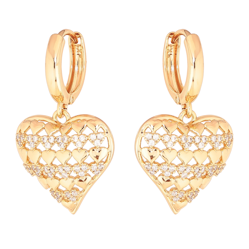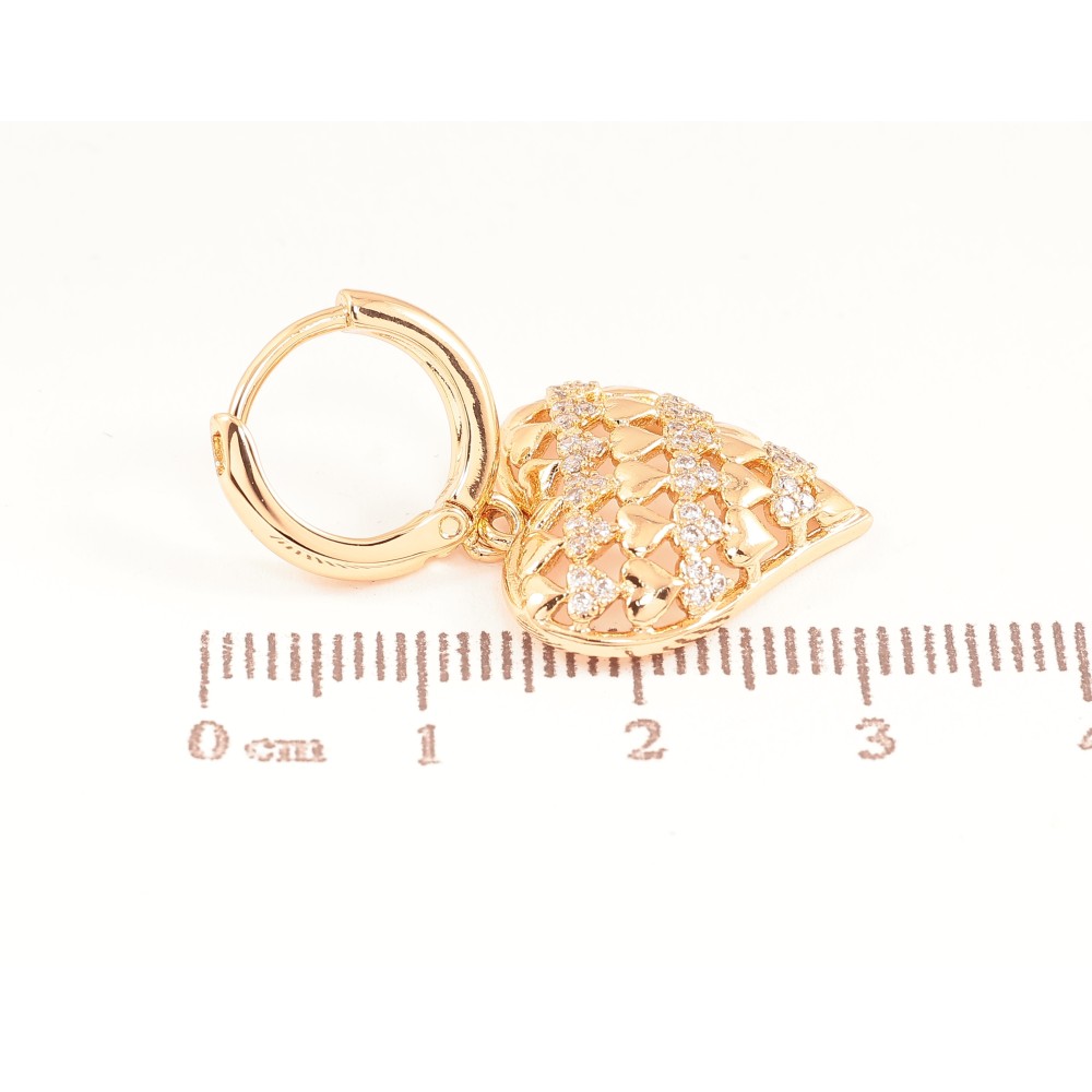 Сережки Xuping колір Позолота 18К підвіски на колечках "Сердечки з кристалами"