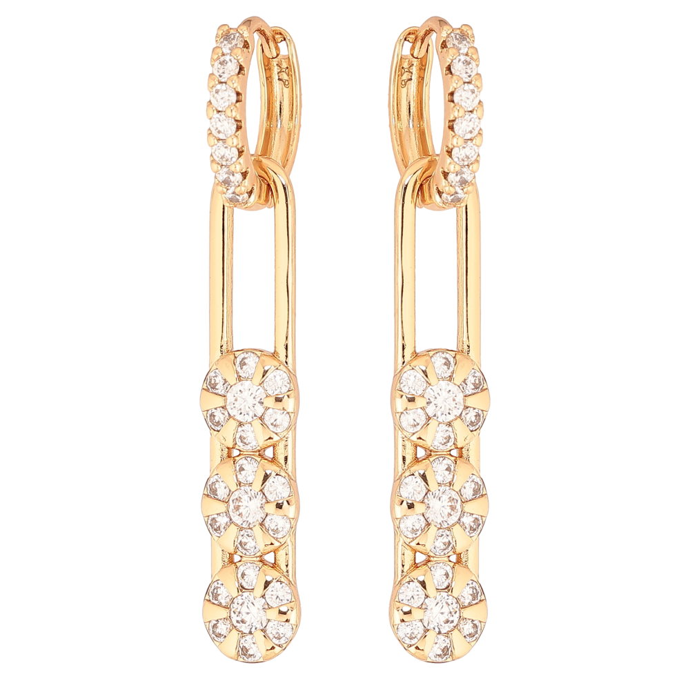 Сережки Xuping колір Позолота 18К підвіски на колечках "Візерунок з кристалами" 2 в 1