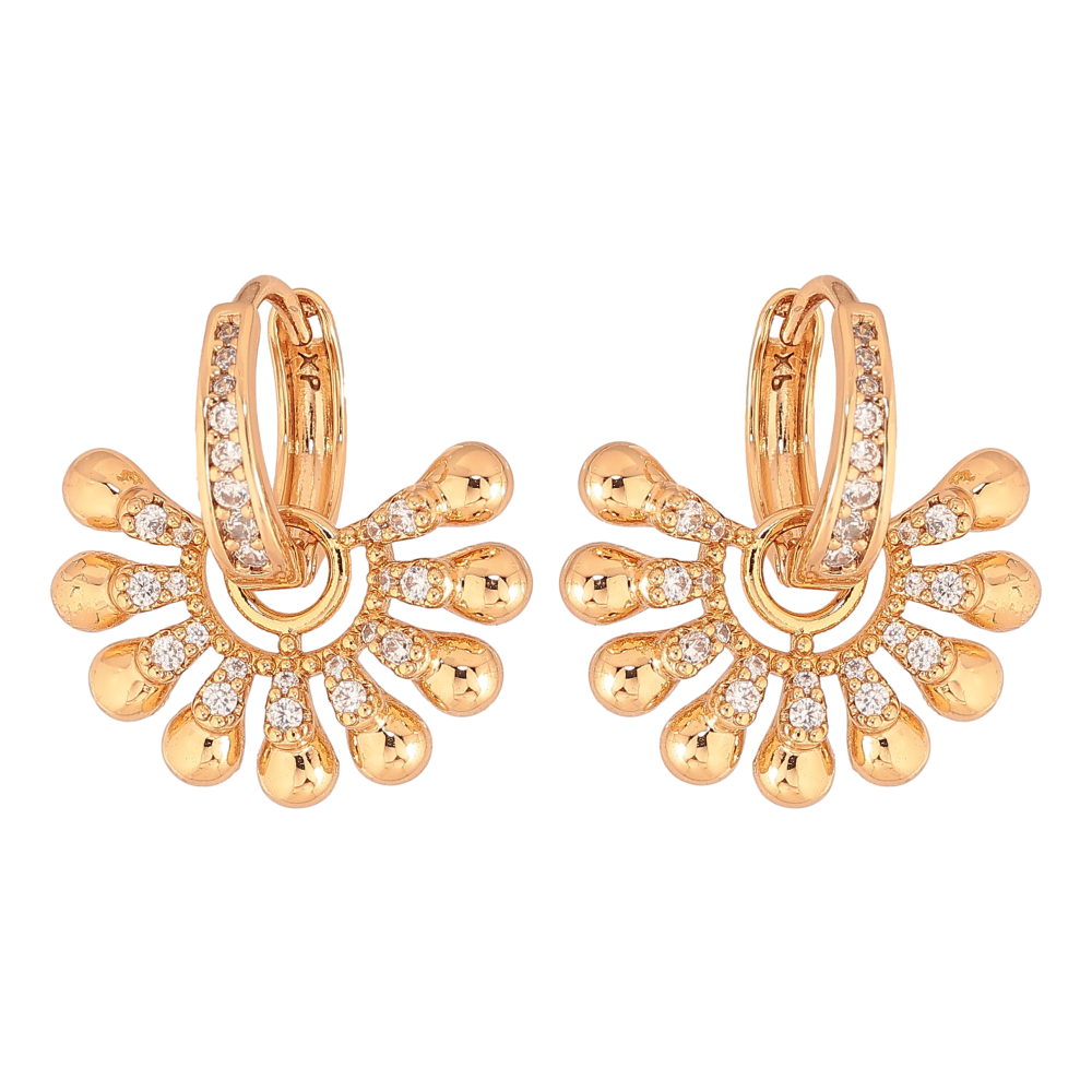 Сережки Xuping колір Позолота 18К підвіски на колечках "Візерунок з кристалами" 2 в 1 фото №1