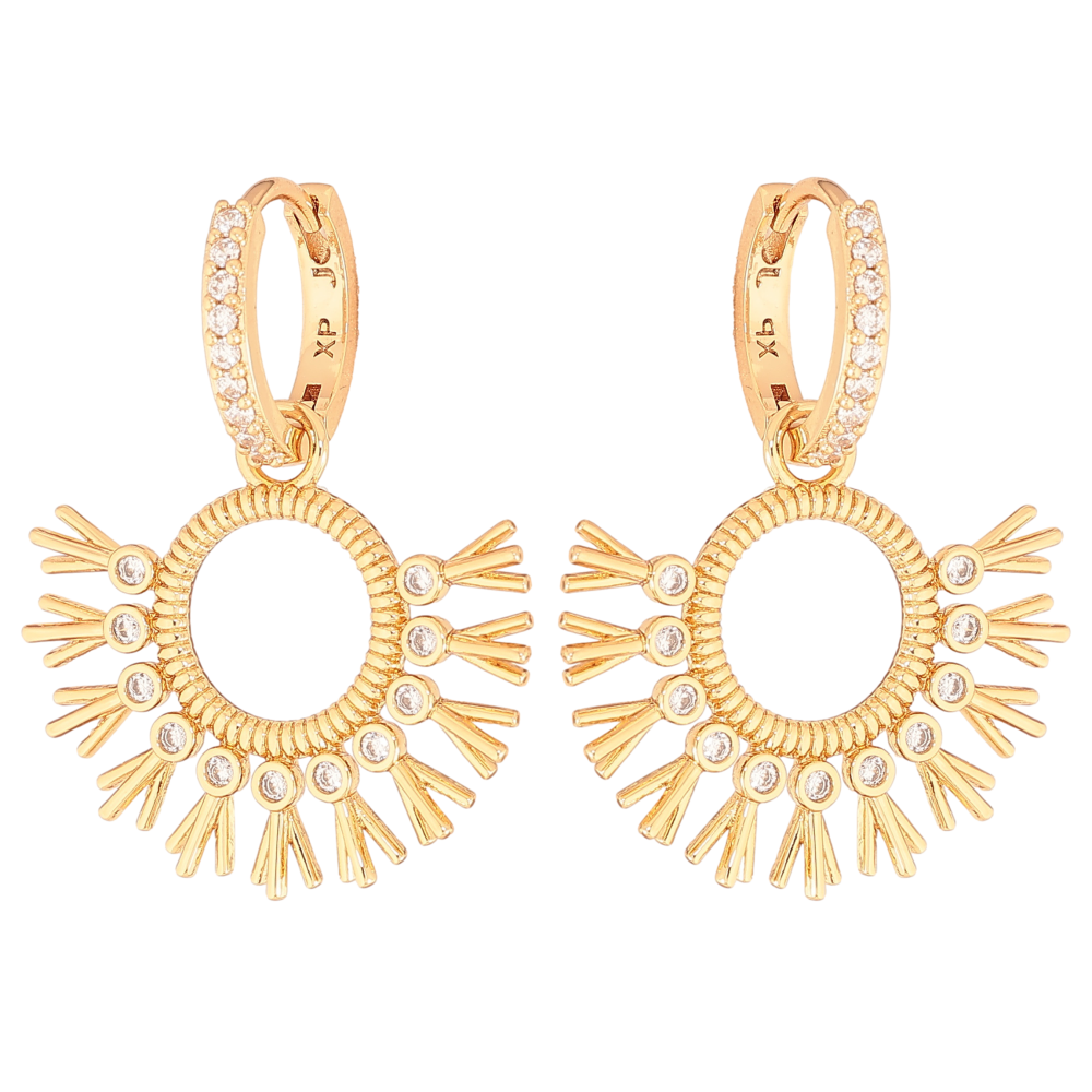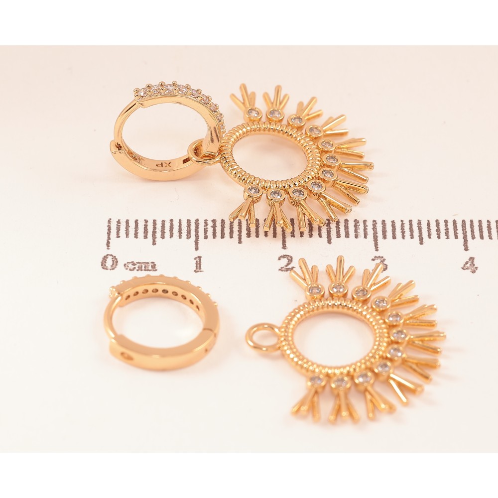 Сережки Xuping колір Позолота 18К підвіски на колечках "Візерунок з кристалами" 2 в 1