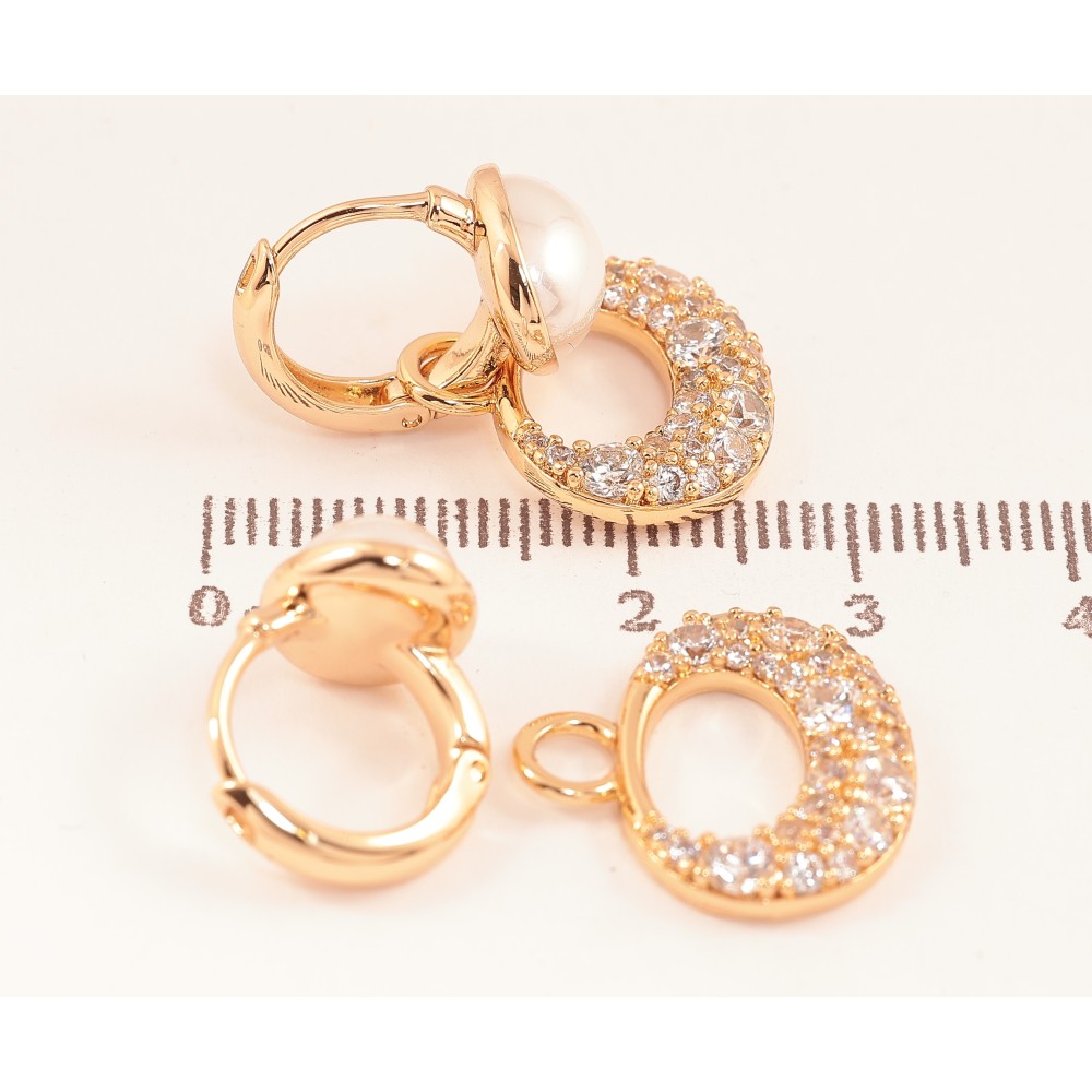 Сережки Xuping колір Позолота 18К підвіски на колечках "Візерунок з кристалами і перлинами" 2 в 1