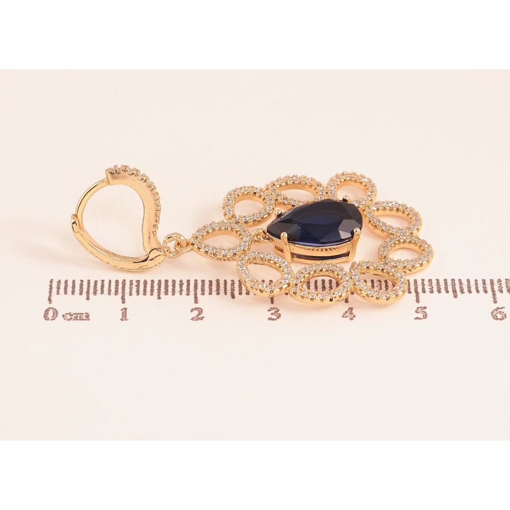 Сережки Xuping колір Позолота 18К підвіски на колечках "Витончені підвіски з синіми кристалами"