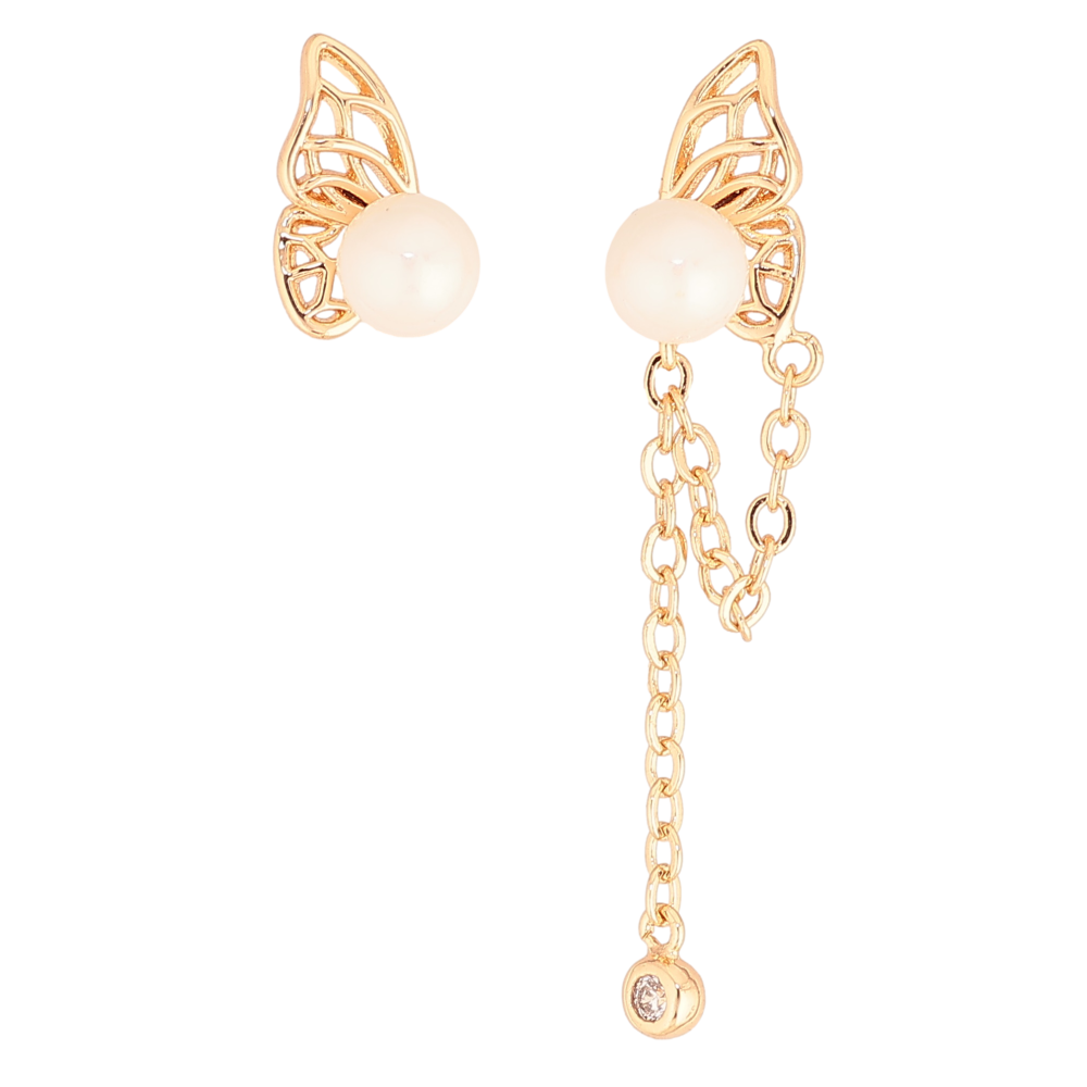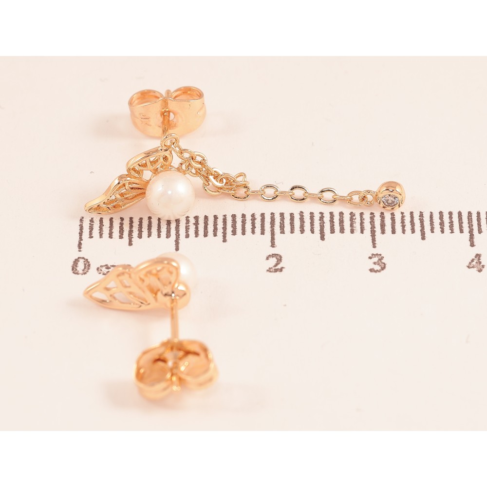 Сережки Xuping колір Позолота 18К пусети "Асиметричні крила метелика з перлинами"