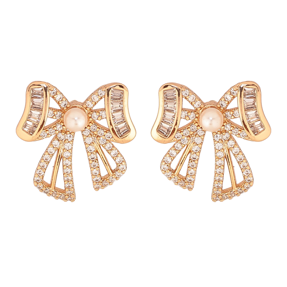 Сережки Xuping колір Позолота 18К пусети "Банти з перлинами та кристалами"