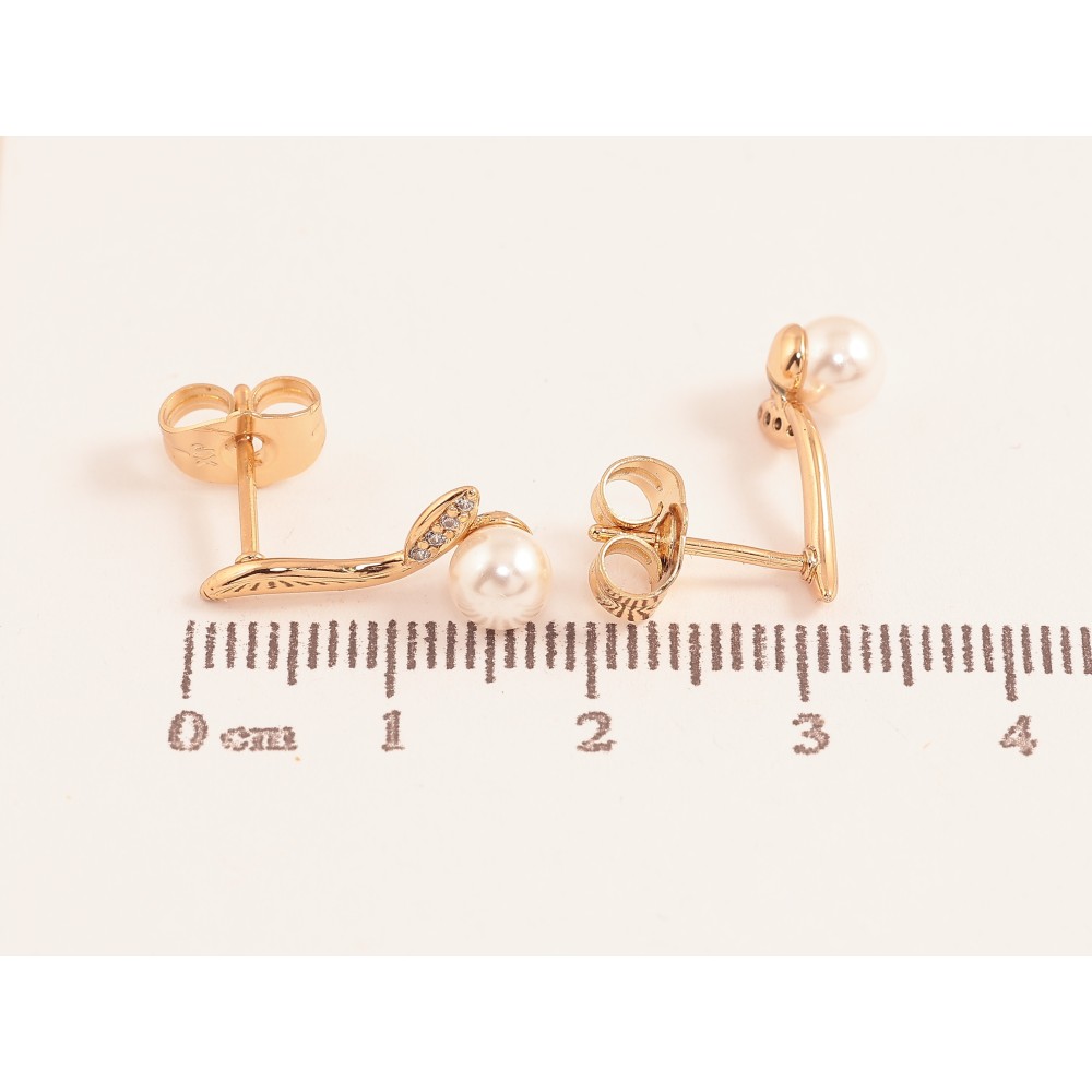 Сережки Xuping колір Позолота 18К пусети "Декоративний візерунок з перлинами"