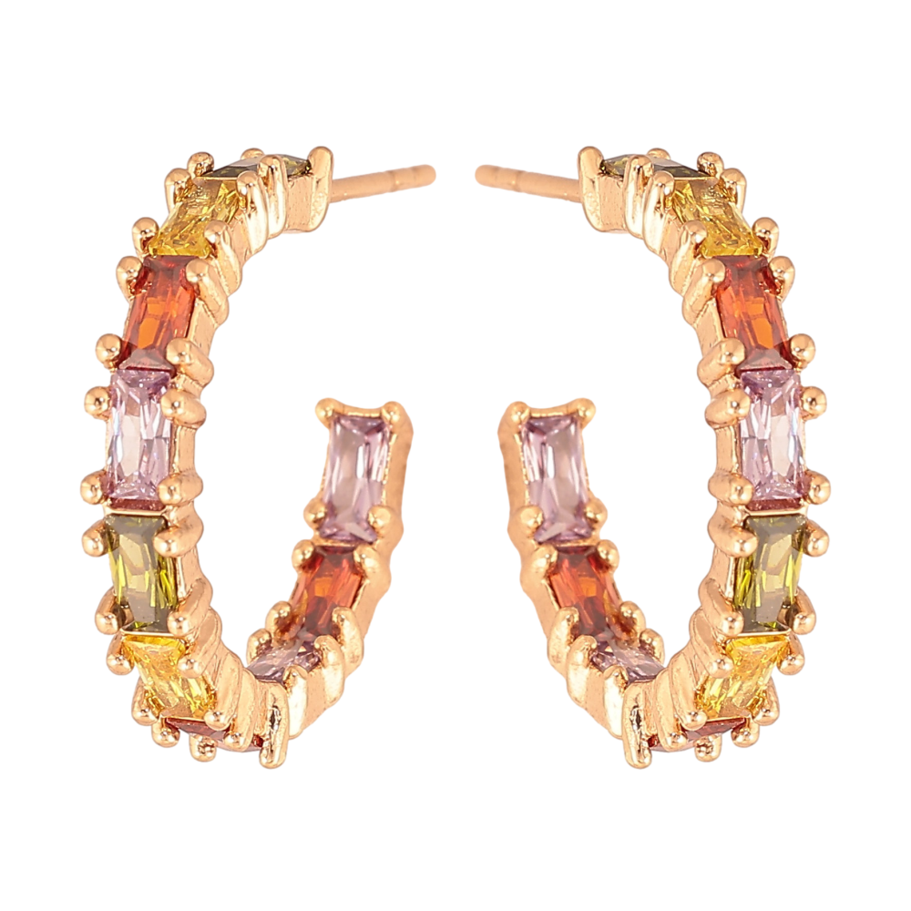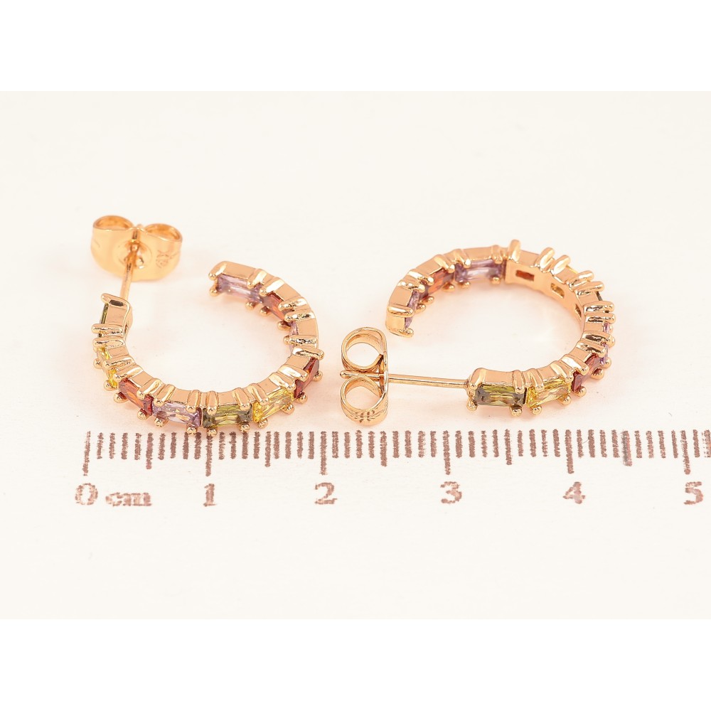 Сережки Xuping колір Позолота 18К пусети "Доріжки різнокольорових кристалів"