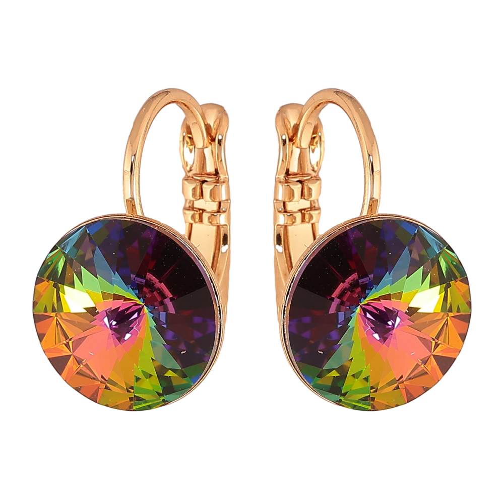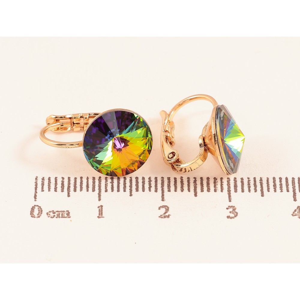 Сережки Xuping колір Позолота 18К французький замок "Кольорові кристали" ø 11мм