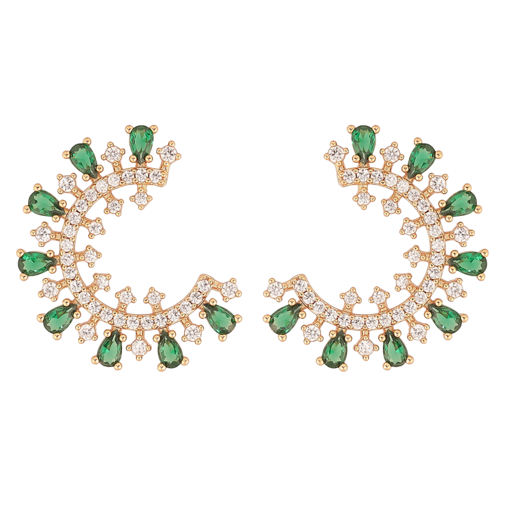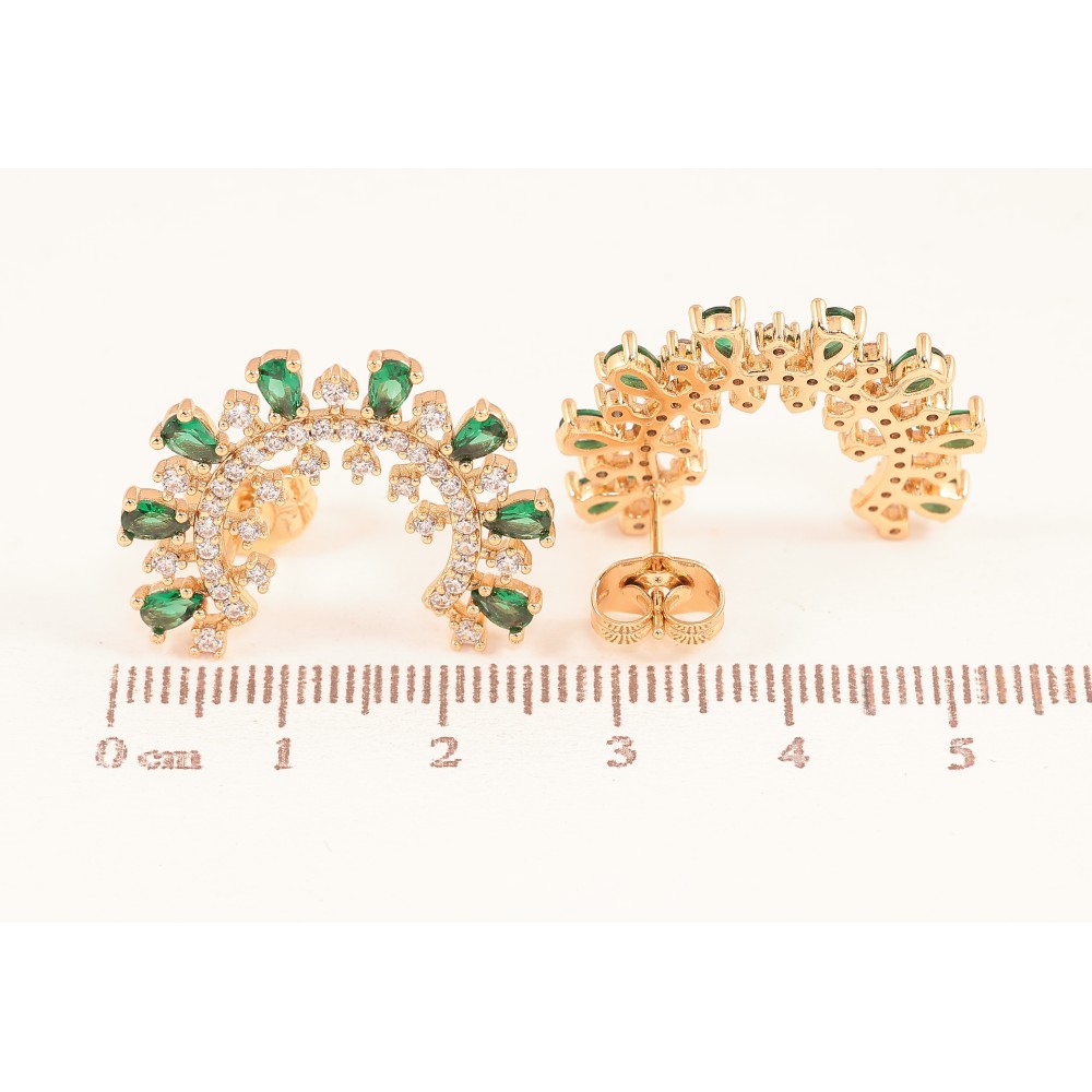 Сережки Xuping колір Позолота 18К пусети "Інкрустація з зеленими кристалами"