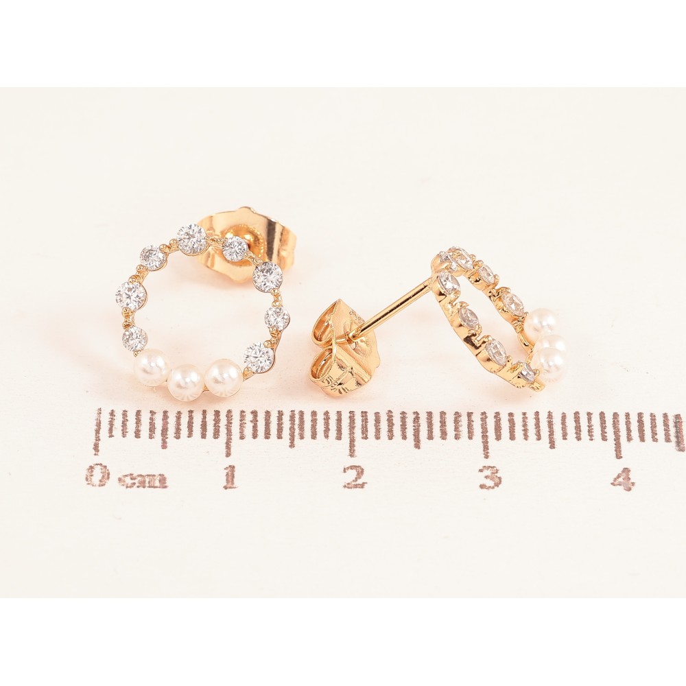 Сережки Xuping колір Позолота 18К пусети "Кільця з кристалами та перлинами"