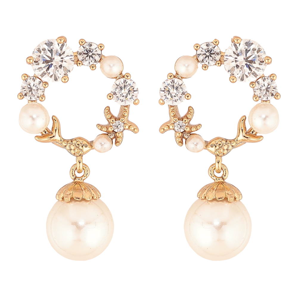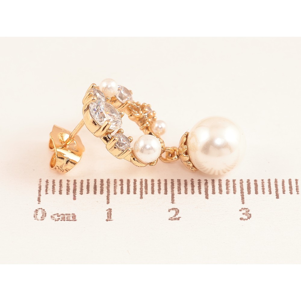 Сережки Xuping колір Позолота 18К пусети "Кристальні кільця з перлинами"