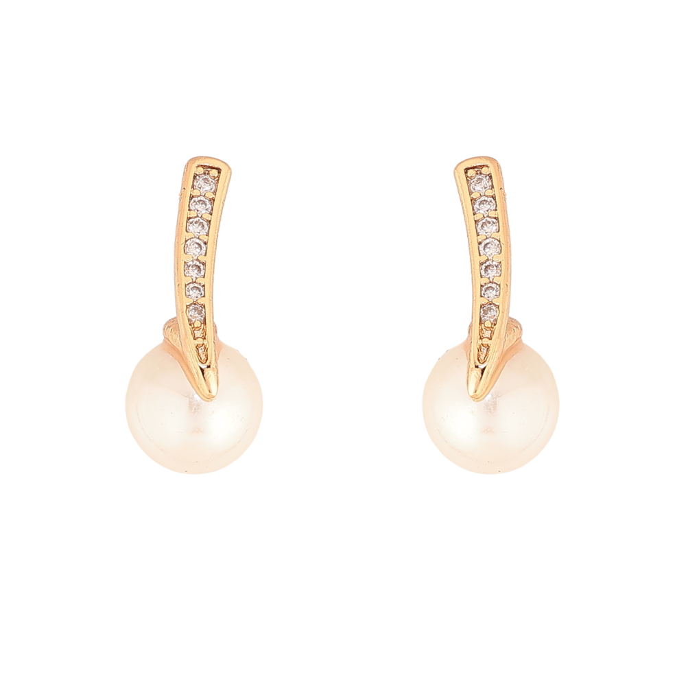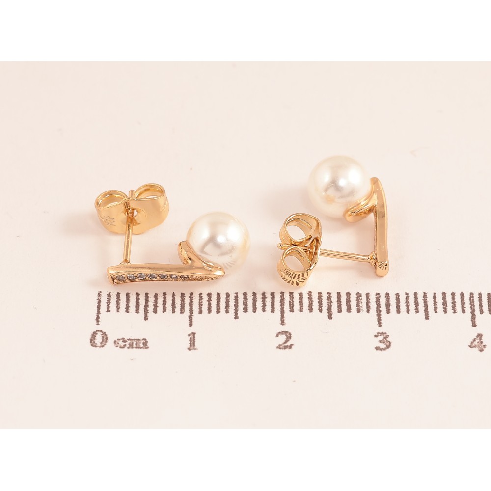 Сережки Xuping колір Позолота 18К пусети "Перлини з кришталевими доріжками"