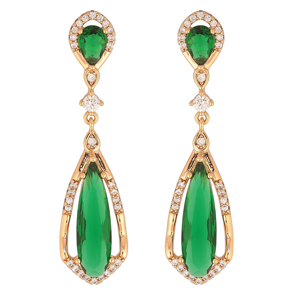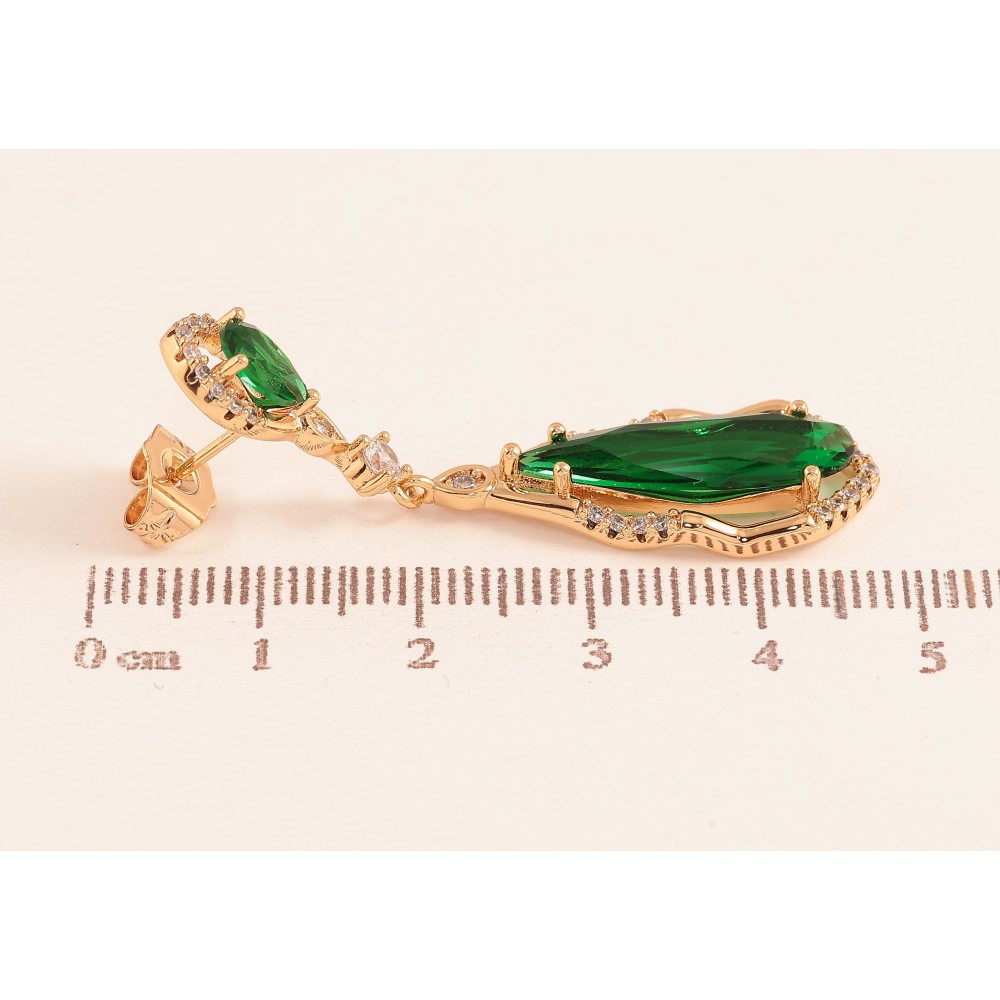 Сережки Xuping колір Позолота 18К пусети "Підвіски із зеленими кристалами"